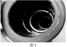 事端分支箱電纜終端所運用的硅脂密封功用不良,故障發生后,當拆撥其它兩相電纜頭時,由于硅脂出現干燥粘結(如圖5),需求多人合力才調撥出,可見硅脂已不能起到潤滑防潮與絕緣的效果,不能與電纜頭同“呼吸”,彈性功用大為下降。