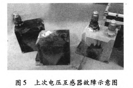 2011年3月30日0:38,35kV垣潔線、35kV垣宏回A、B相電壓互感器擊穿,如圖5所示;2012年3月26日19:7:58,35kV垣潔線56號線路電壓互感器A、B、C相損壞,A、B相有迸裂現象。